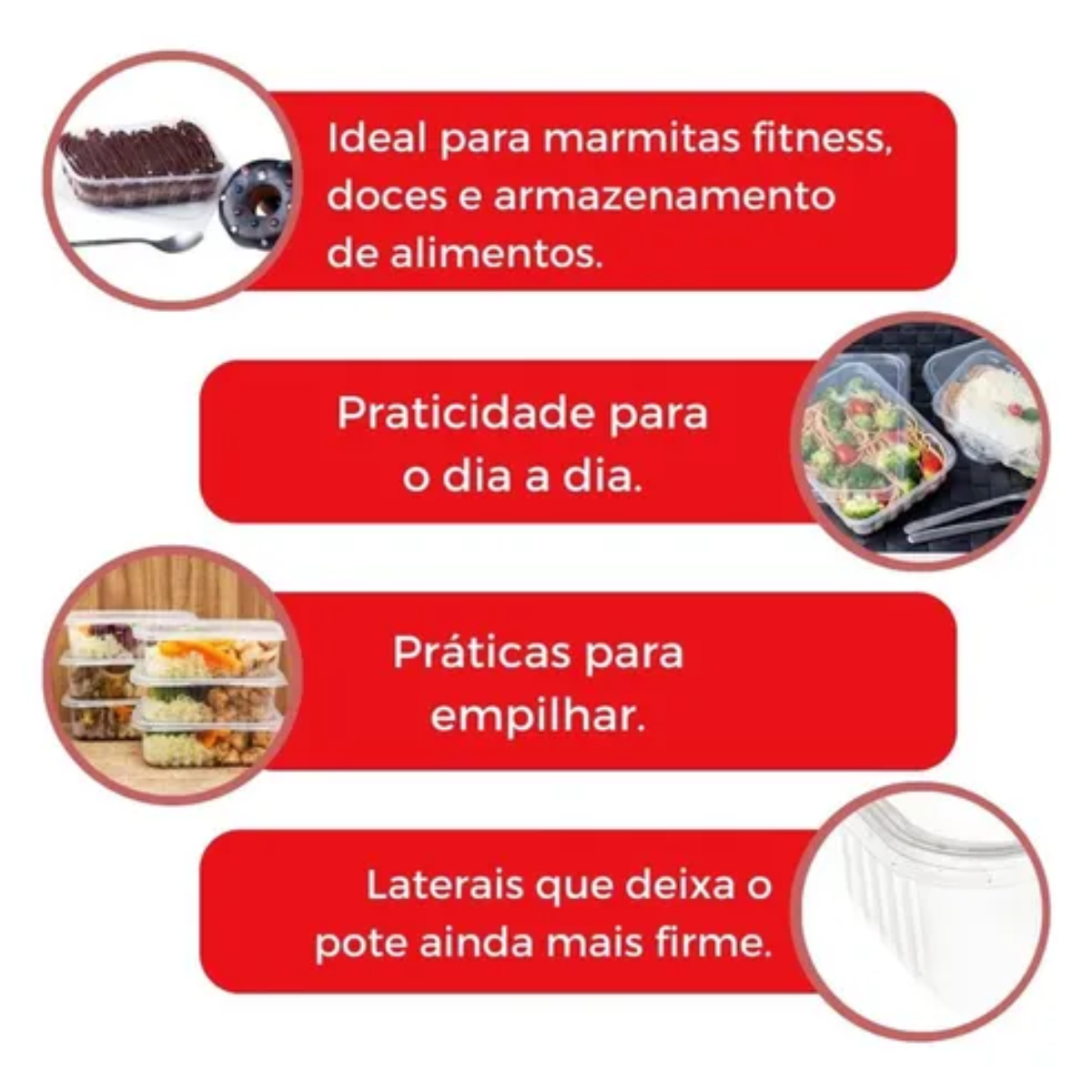 O Pote Retangular 1000ml é perfeito para quem busca praticidade, segurança e qualidade no armazenamento de alimentos. Ideal para marmitas, congelamento, delivery, doces e sobremesas.
